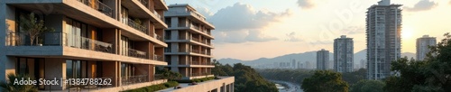 © Panda, Obraz premium Modern luxury apartment complex under construction, complex, exterior