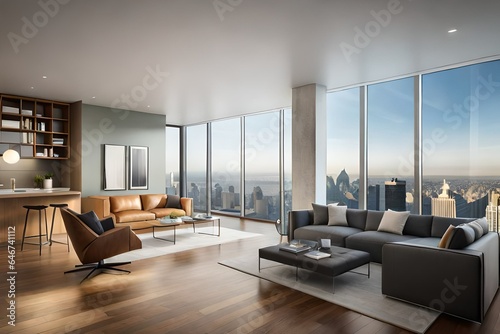 Fototapeta premium Modern Luxury Apartment Interior with City View