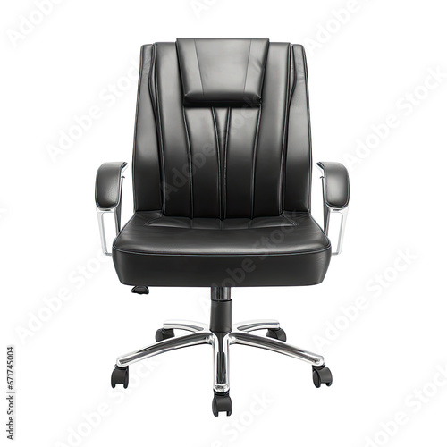 © FAFO, Naklejka premium modern luxury black leather office chair, isolated on a transparent background. PNG, cutout, or clipping path.