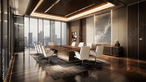 © NAIMAH, Naklejka premium Modern Luxury Boardroom with Panoramic City View