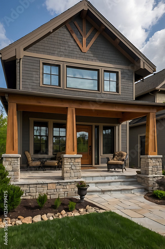 Obraz premium Modern Luxury Home Exterior: Stone, Wood, and Glass Architectural Design