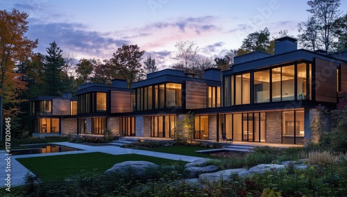 © Alfath, Fototapeta premium Modern luxury homes at dusk.