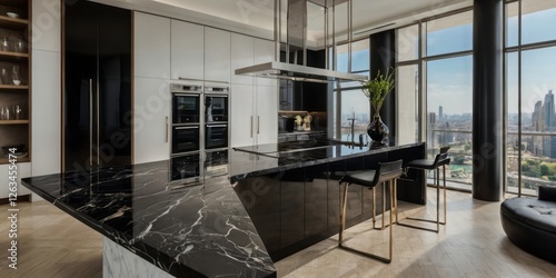 Fototapeta premium Modern Luxury Kitchen with Stunning City View