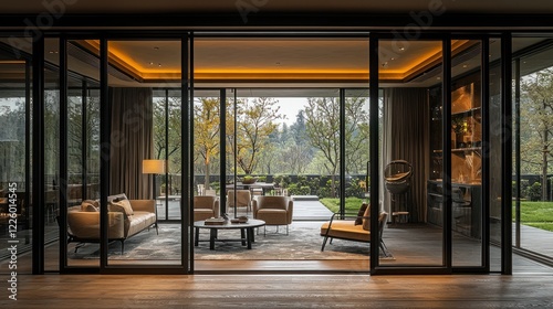 Obraz premium Modern Luxury Living Room with Stunning Garden View