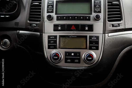 Fototapeta premium Modern luxury prestige car interior, dashboard, steering wheel.