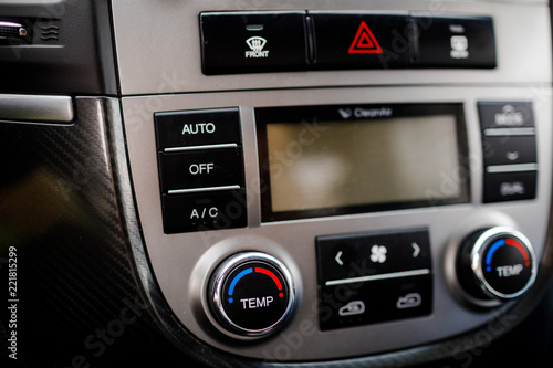 Fototapeta premium Modern luxury prestige car interior, dashboard, steering wheel.
