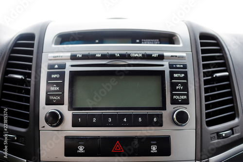 Fototapeta premium Modern luxury prestige car interior, dashboard, steering wheel.