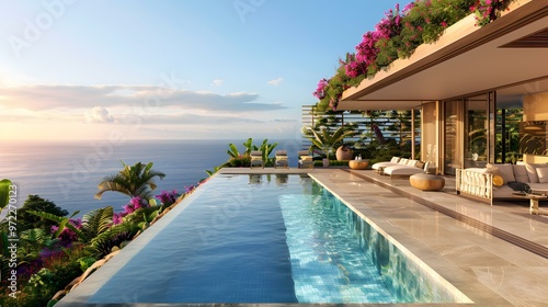 © Yelena, Fototapeta premium Modern Luxury Villa with Infinity Pool and Ocean View