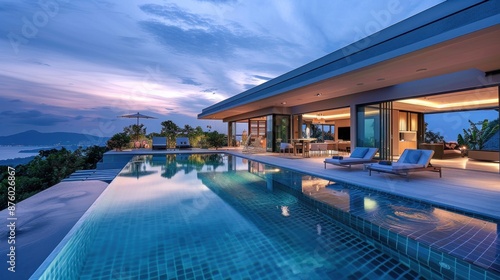 Fototapeta premium Modern Luxury Villa with Infinity Pool and Panoramic Views