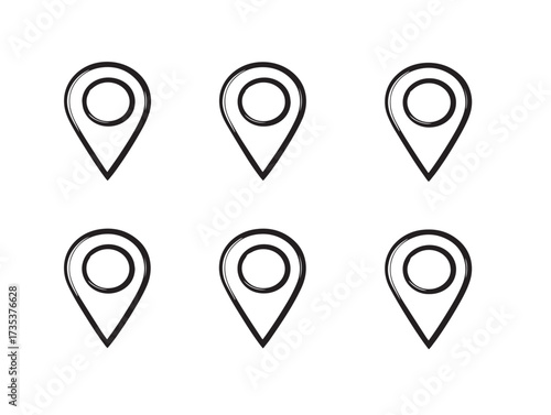Fototapeta premium Modern Map Marker Icon Collection Six Icons Clean Minimalist Vector Illustration