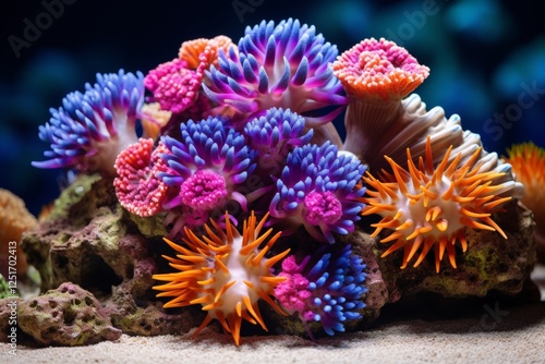 Fototapeta premium modern marine aquarium with colorful sea corals, fish