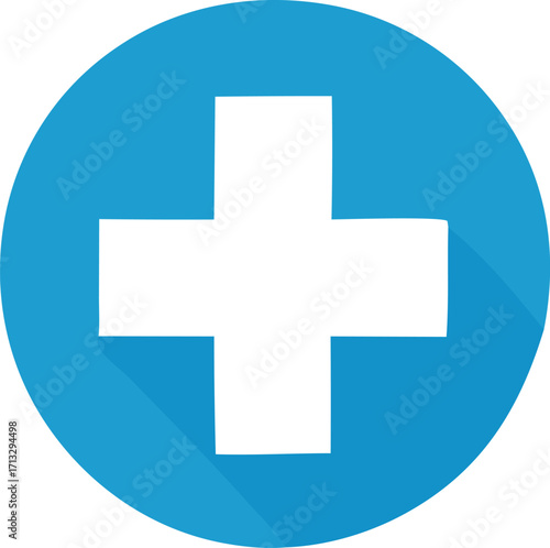 Fototapeta premium Modern medical cross icon inside a blue circle representing healthcare and emergency services