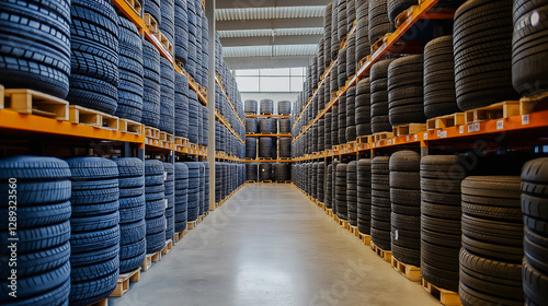 © Daria, Fototapeta premium Modern methods of storing car tires in a warehouse