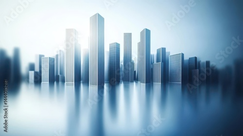 © RizArt, Fototapeta premium Modern metropolis cityscape reflected on a still surface.