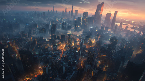 Fototapeta premium modern metropolis, metropolis, city, skyline, building, skyscraper, view, cityscape, nightscape, city nightscape, new york, architecture, urban, business,