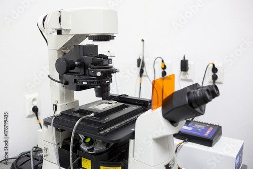 © Belish, Naklejka premium Modern microscope microbiology laboratory