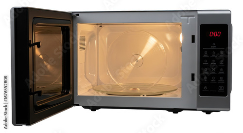 Fototapeta premium modern microwave oven streamlined design, effortless cooking, illuminated interior