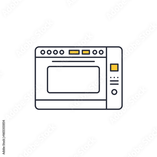 © Nina, Fototapeta premium Modern microwave oven with control panel and yellow accents