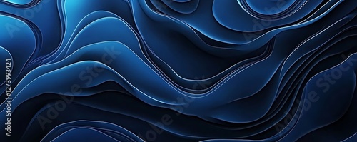 © Tanish, Obraz premium Modern minimalist abstract blue background with wavy curved lines