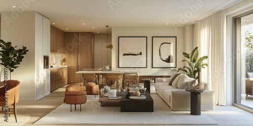 Fototapeta premium Modern Minimalist Apartment Living Room Design