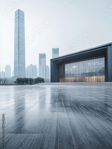 © AdolescentChat, Fototapeta premium Modern minimalist architectural plaza car advertisement background image
