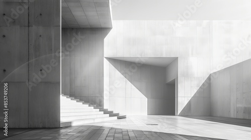 Obraz premium Modern Minimalist Architecture with Geometric Shadows and Clean Lines in Black and White