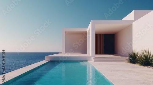 Fototapeta premium Modern Minimalist Architecture with Infinity Pool by Ocean View