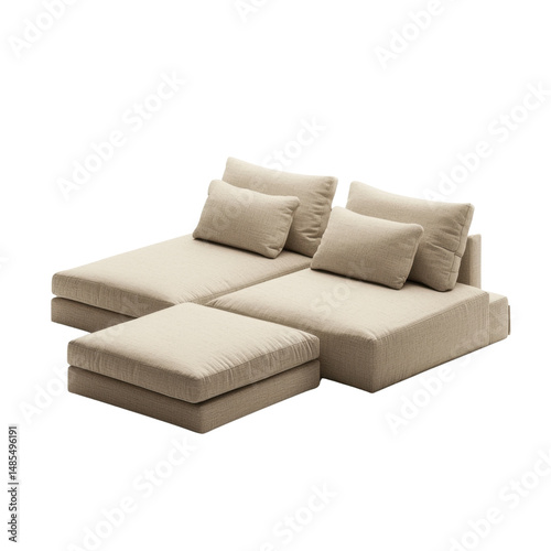 © KYR, Obraz premium Modern Minimalist Beige Sofa with Cushions for Contemporary Living