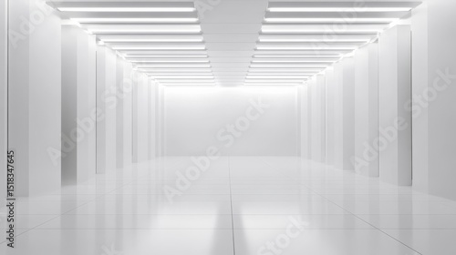 Obraz premium Modern Minimalist Bright Clean Hallway Interior with Polished Tile Flooring and White Walls