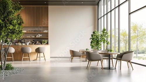 Fototapeta premium Modern Minimalist Cafe Interior with Natural Light