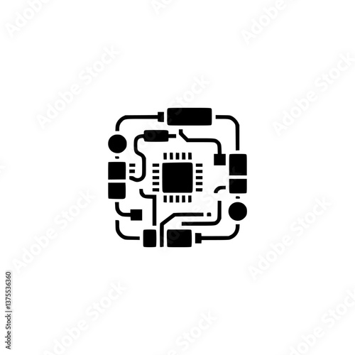 Fototapeta premium Modern Minimalist Circuit Board Icon on White Background