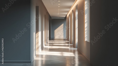 © Adi, Fototapeta premium Modern Minimalist Corridor with Skylight and Shadows