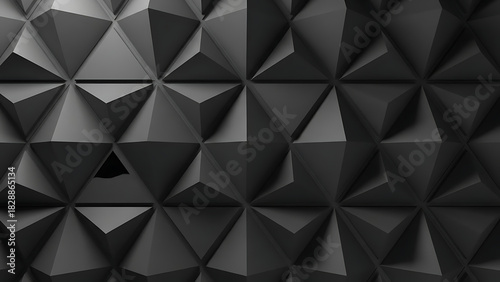 © Picture, Fototapeta premium Modern minimalist dark abstract background of seamless 3d geometric pyramids and sharp triangular facets, creating a dynamic textured surface with strong contrasts, futuristic aesthetic, and design ap