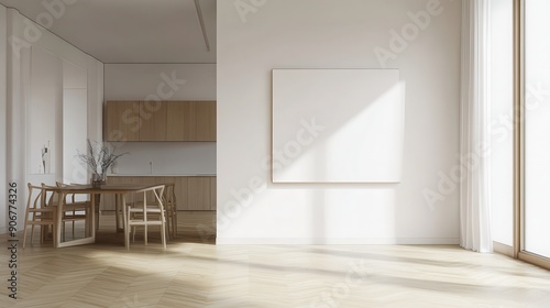 Obraz premium Modern Minimalist Dining Room with a blank painting for mockups and designs.