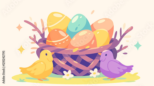 © Kafka, Fototapeta premium Modern minimalist Easter basket with pastel eggs on a neutral background