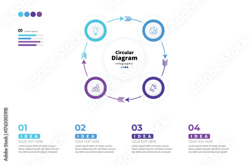 © MD, Naklejka premium Modern minimalist, elegant, clean circular steps editable infographic design template