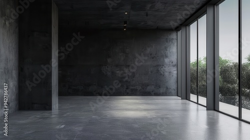 Obraz premium Modern Minimalist Empty Room with Large Windows