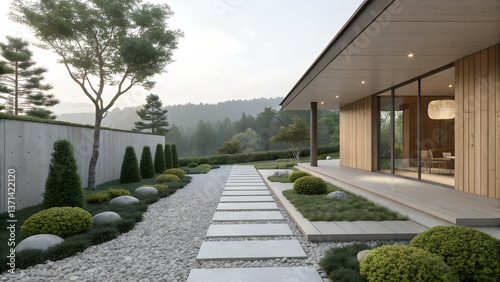 Fototapeta premium Modern Minimalist Garden"A landscape design in a minimalist style: neatly...
