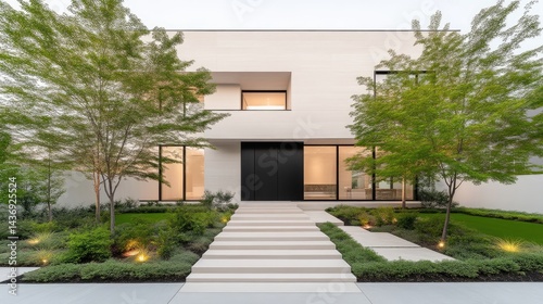 © PAPAHJAHATZ, Obraz premium Modern, minimalist home exterior with landscaped grounds