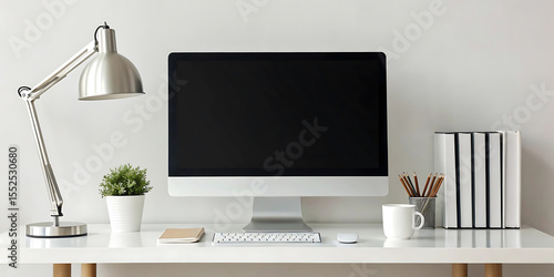 Obraz premium Modern Minimalist Home Office Setup Desk Organization and Productivity