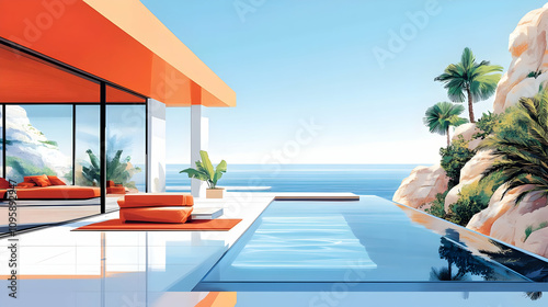 Fototapeta premium Modern Minimalist Home with Infinity Pool Illustration