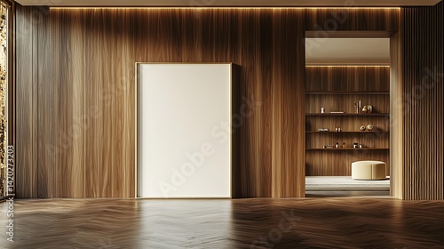 © Biggy, Obraz premium Modern Minimalist Interior Design Featuring Wood Elements and Space