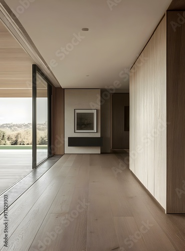 Obraz premium Modern Minimalist Interior Design with Wooden Walls and Flooring