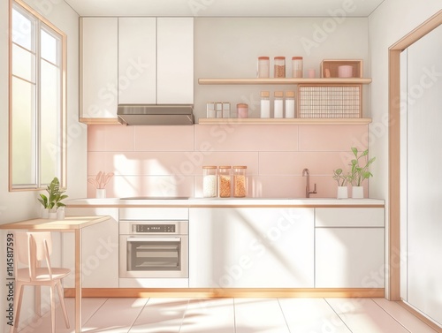 Fototapeta premium Modern Minimalist Kitchen Design With Pink Accents