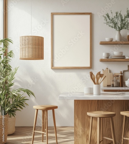 Fototapeta premium Modern, minimalist kitchen with warm, natural tones