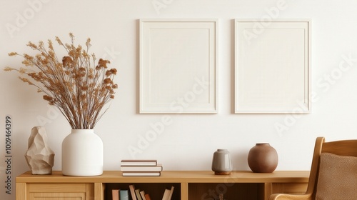 Obraz premium Modern minimalist living room design with natural decor elements