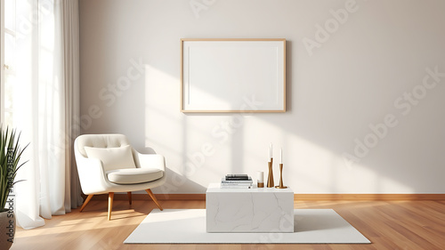 Fototapeta premium Modern Minimalist Living Room Interior Design with Mockup Frame
