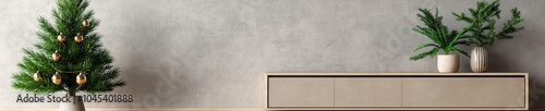 © Wanida, Fototapeta premium Modern Minimalist Living Room with Christmas Tree