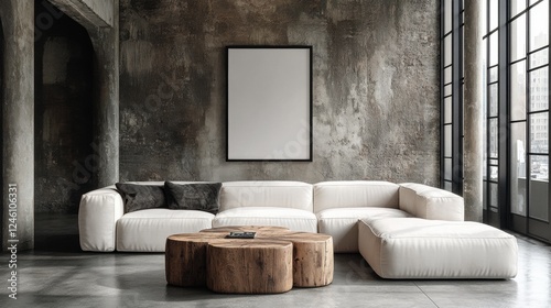 Fototapeta premium Modern Minimalist Living Room with Sleek Furniture and Concrete Walls