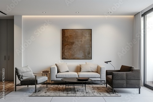 © Sajida, Fototapeta premium Modern Minimalist Living Room with Sleek Furniture and Statement Art